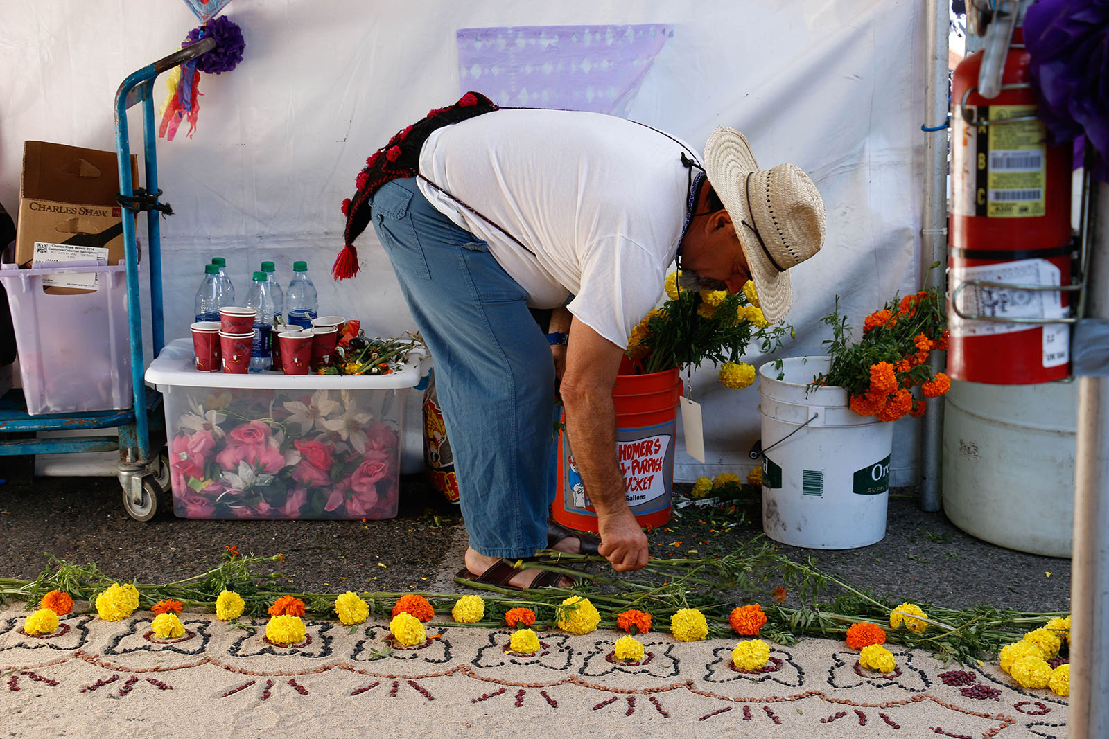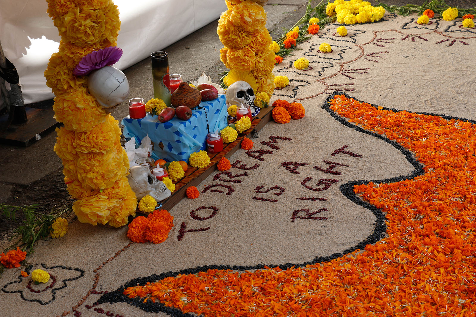 - Gonzalo Hidalgo says these yellow and orange marigolds symbolize the monarch butterfly. “Monarch butterflies take four generations to return to where they are from,” he says. “They carry it in their DNA.”