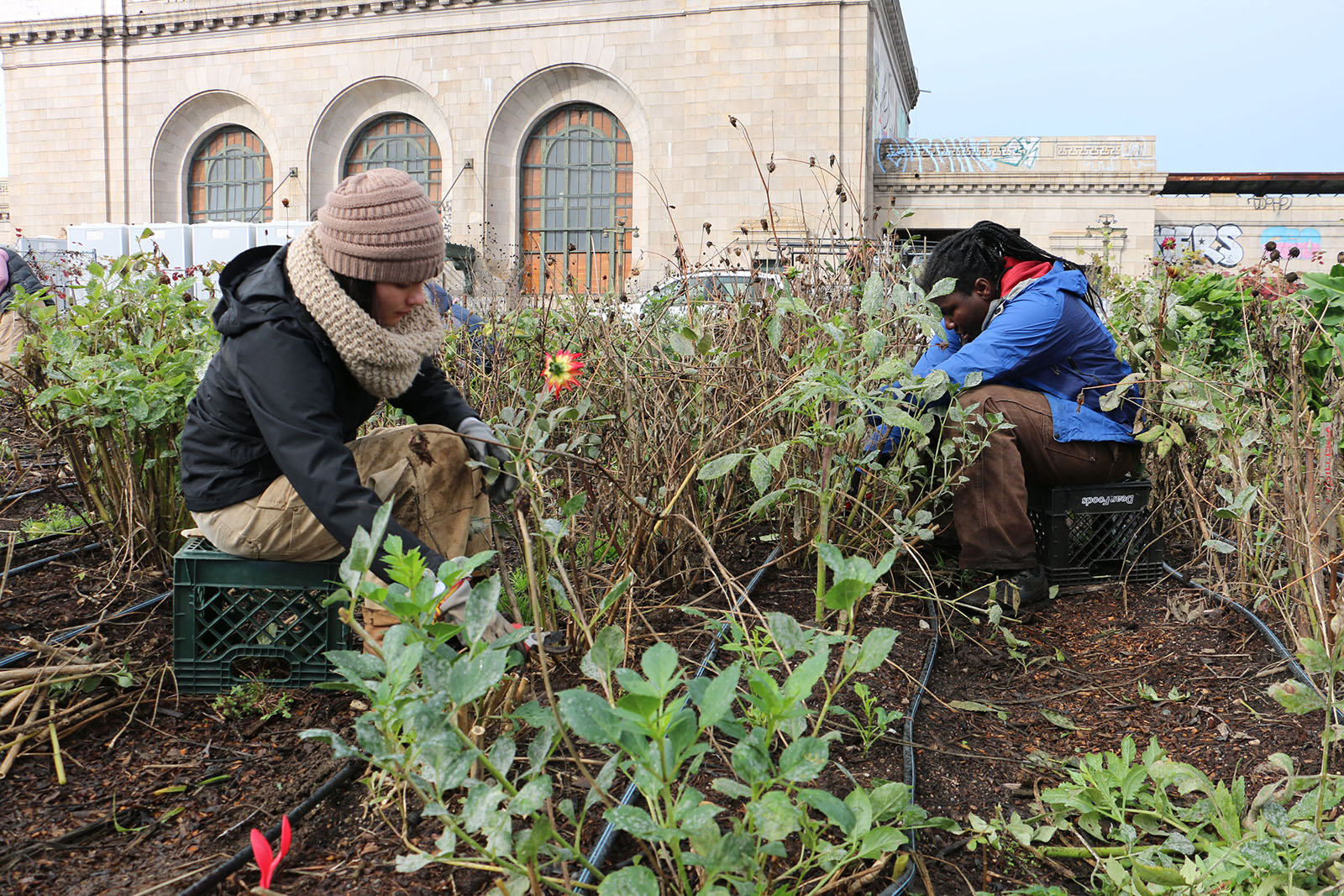 - On a rainy Saturday morning, a group of interns and volunteers gathered at GROW Oakland Farm in front of Oakland’s historic 16th Street Train Station. They spent much of the morning clearing out dead flowers in preparation for planting.