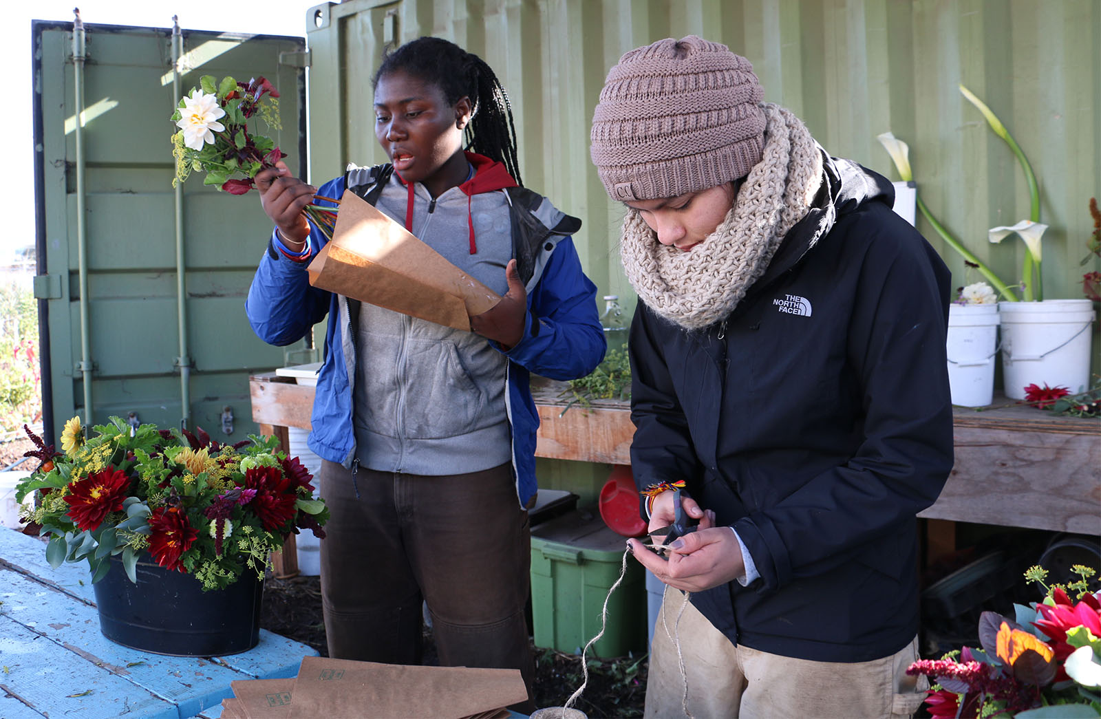 - GROW looked dreary—gray from the weather, brown from dead flowers—that morning. But soon, “the farm will be vibrant and overflowing with colors and flowers in bloom,” Myles says. By then, Beyond Emancipation interns will be filling flower orders regularly.